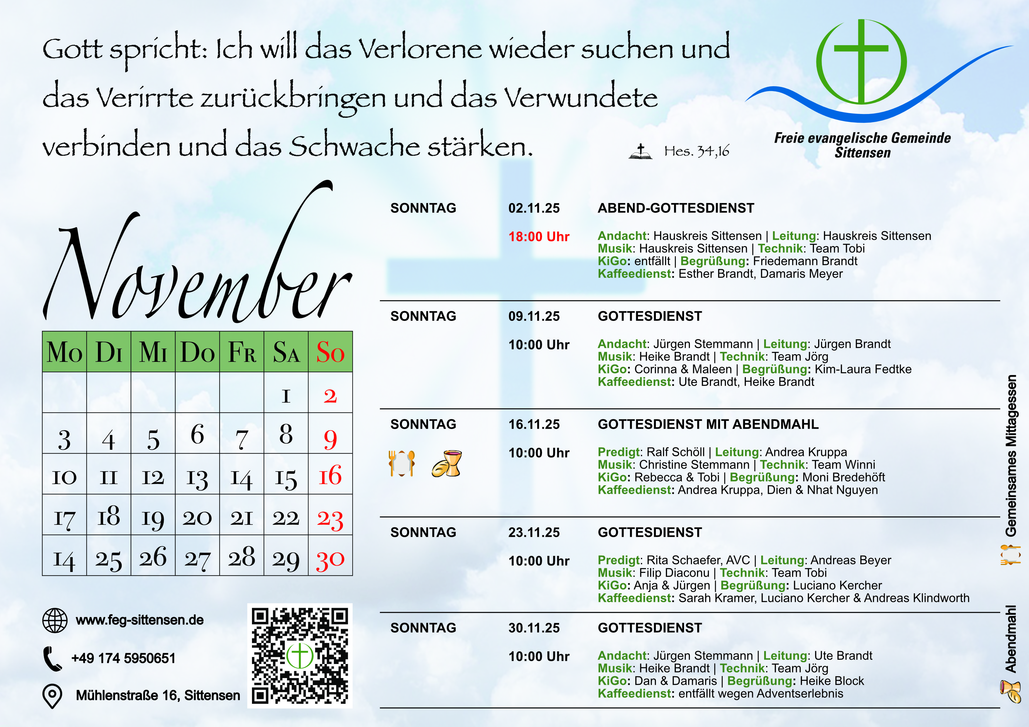 Herzliche Einladung zu unseren Gottesdiensten und Kindergottesdiensten im Gemeindezentrum, Mühlenstraße 16 in Sittensen